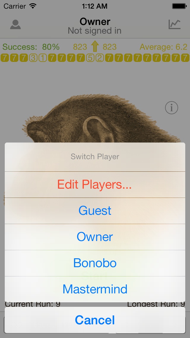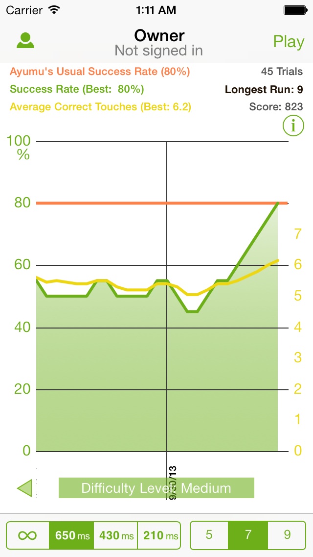 - Best values for success rate and average correct touches are remembered and displayed in the statistics view.