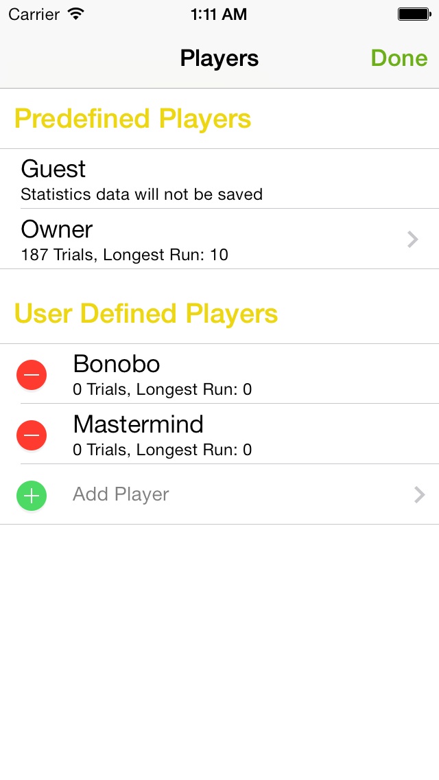 - Number of trials accomplished for each setting immediately visible right within the settings selection field.